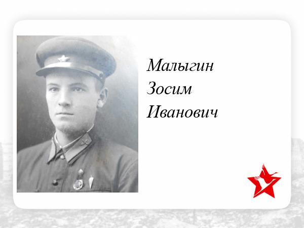Гв. Старший лейтенант Зосим Малыгин был одним из таких - кадровым летчиком-офицером. Все 8 боевых вылетов, осуществленных в период Маньчжурской операции, прошли безупречно. Всякий раз после успешного бомбометания по позициям врага и выполнения боевой задачи, машина и экипаж с участием борт-механика Зосима Малыгина, возвращались домой целыми и невредимыми. Трудно досконально посчитать те потери, которые были нанесены врагу непосредственно машиной Зосима Малыгина. Успешность бомбардировок обеспечивается слаженностью действий целого звена самолетов. Однако известно, что за две недели Манчжурской операции Квантунская армия потеряла 200 тыс. убитыми, 600 тыс. солдат и офицеров сдались в плен. Очевидно, есть в этой победе и существенный вклад старшего лейтенанта Малыгина. Именно так и надо было побеждать врага – без неоправданных людских потерь, на хорошо отлаженной и могучей технике! Страшно представить, что выпало на короткую 29-ти летнюю жизнь Зосима Малыгина. Не зря он горел в самолете в небе над Финляндией в 1939 г., не зря прыгал с парашютом после тяжелой контузии в небе над Белоруссией в 1943 г. Все это закалило его дух, сделало отважным воином, не боящимся летать в тыл врага и осуществлять дерзкие налеты на его позиции.