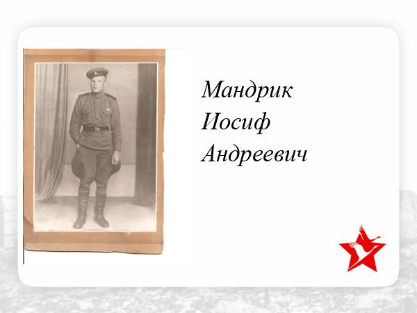 Мой папа ушёл на фронт в 1943г.,из д. Бобровка Томского района; ему было 17 лет, в военкомате сказал, что уже 18. Воевал в пехоте на 3-ем Украинском фронте до конца войны, был контужен. Был награждён медалями "За взятие Будапешта", "За взятие Вены", "За победу над Германией". До конца 1946 г. проходил службу в Австрии.