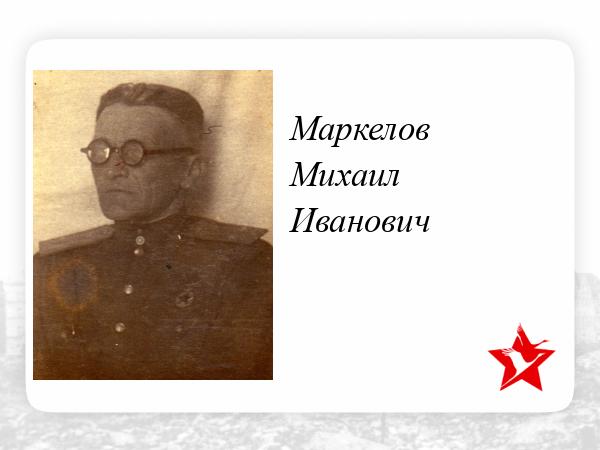 Маркелов Михаил Иванович (1885-1953)-подполковник Советской Армии, руководил обучением летного состава в ВВШАМ в г. Сталинобад. Во время войны его школа передвигалась по линии фронта, обучая пилотов летным навыкам.