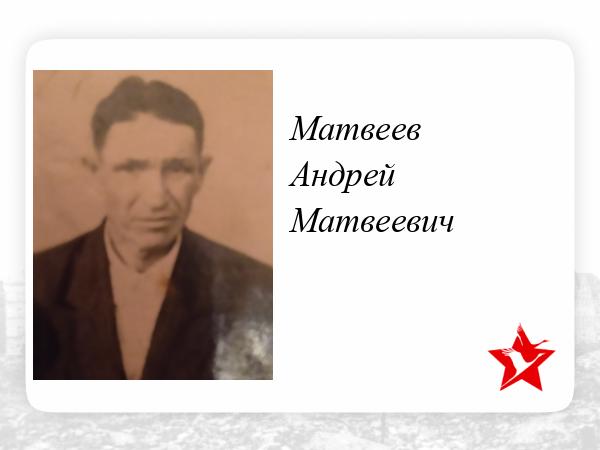 Шёл 1941 год. У Андрея Матвеева все сложилось: трудолюбивая ,очень чистоплотная ,на зависть всей деревне жена ,радуют 3 дочери и 2 сына. Старшая дочь в этом году закончила начальную школу ,тоже на зависть всем родителям других учеников ,только на пятёрки .
