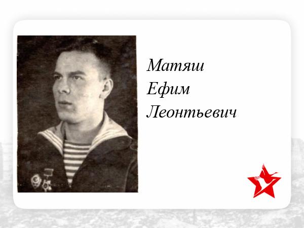 Старшина II степени Матяш, являясь участником двенадцати военных походов и потопления шести кораблей противника внес свой скромный вклад в дело нашей победы над врагом.