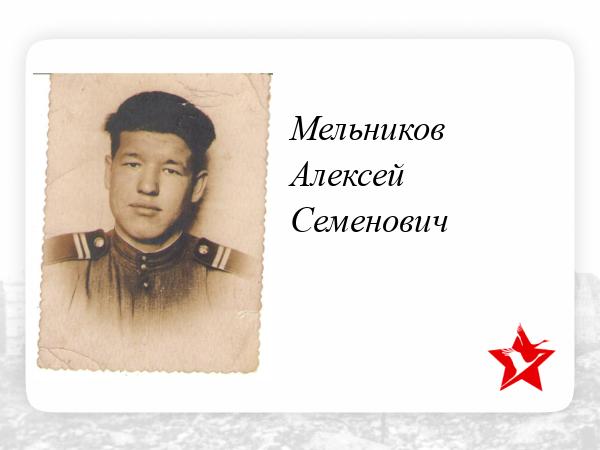 Родился Алексей Семенович в 1926 году в сельской местности города Барабинск, Новосибирской области. Воевал под Сталинградом, был ранен. Полгода провел в госпитале и снова на передовую. В мирное время работал строителем. Умер в 1988 году.
