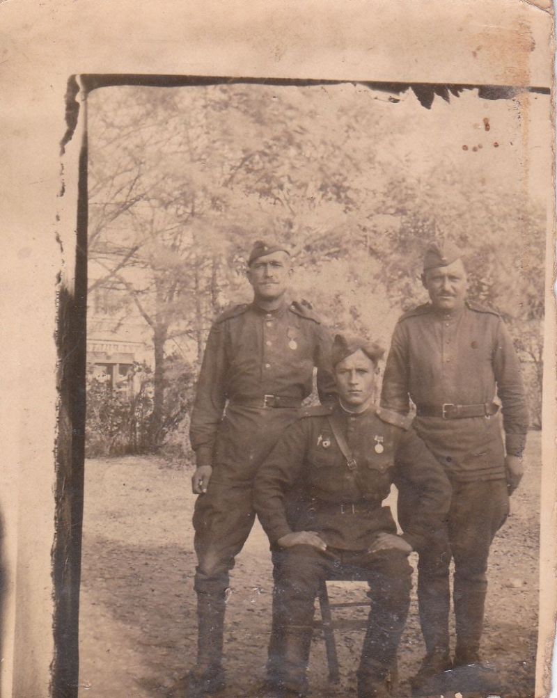На фронте с сентября 1941 г. Воевал в составе 120 миномётной батареи 625 стрелкового полка 221 стрелковой дивизии. Обеспечивал артиллерийские орудия боеприпасами во время боя. Во время боевых действий в ноябре 1943 г. в районе посёлка Стаханов Запорожской области, не смотря на сильный артиллерийский огонь противника, своевременно подвозил снаряды непосредственно на боевую позицию, что способствовало успешному отражению контратак танков противника и пехоты. За это дед был награждён медалью «За боевые заслуги». Летом 1944 г. был ранен, в августе того же года после лечения в госпитале возвратился на фронт.