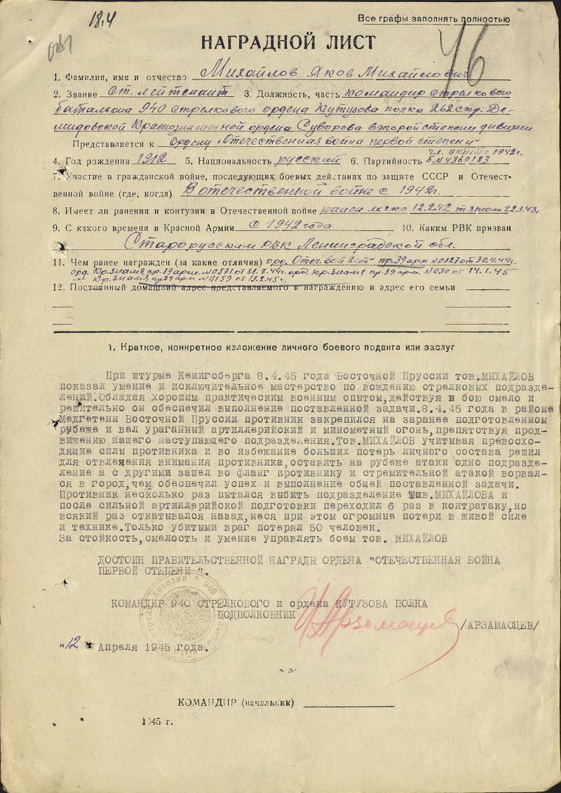 Хотел поделиться с Вами историей моего деда, Михайлова Якова Михайловича.