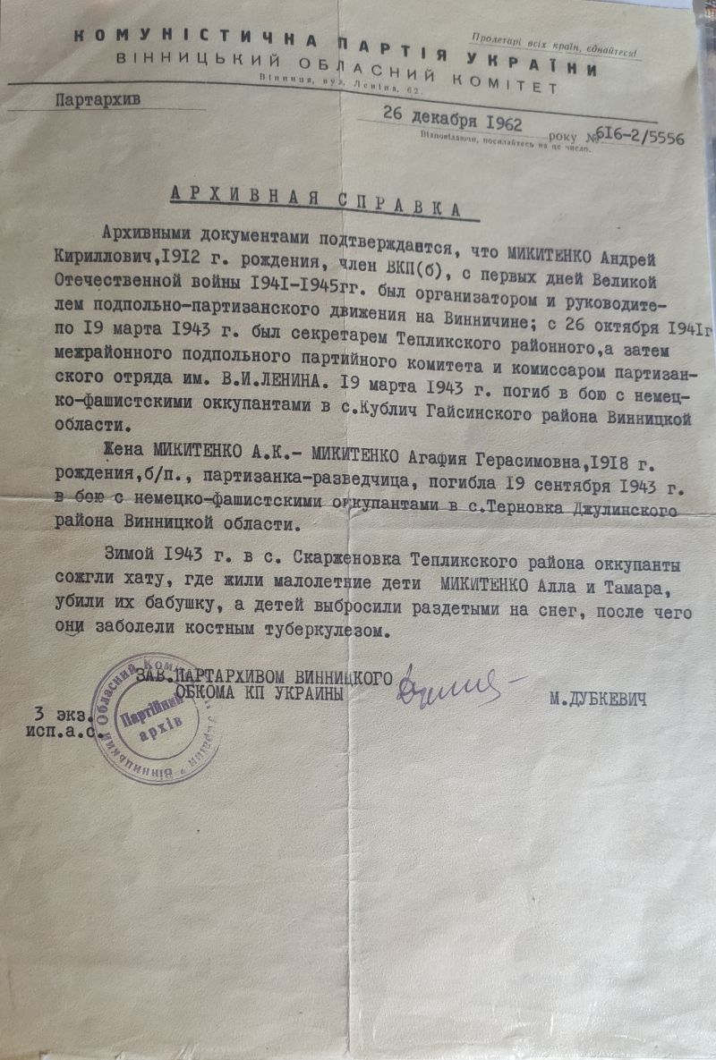 Родился в селе Пряжево Житомирского района. До войны работал старшим агрономом Тепликского райземотдела. В начале войны был оставлен для организации партизанского подполья. Из числа надежных людей и родственников организовался партизанский отряд, где он был коммисаром. Для поддержания связи между межрайонными отрядами с группой товарищей попал в засаду, были окружены по вине предательской деятельности полицаев. С ним были партийные докумнты. Отряд отстреливался до последнего патрона, но в конце концов А.К Микитенко был вынужден взорвать себя гранатой, чтобы документы не попали в руки фашистов. Окружение проихошло в селе Кублич Гайсинского района Винницкой области.