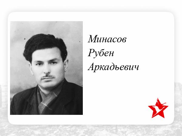 Молодым бойцом, после полугодовой подготовки, был направлен на фронт. Принимал участие в сталинградской битве. Был тяжело ранен в бою. Чудом остался жив, благодаря медицинской сестричке. Она случайно наступила на ногу раненному солдату, когда под снегом, на поле боя искала живых среди убитых. Рубен Аркадьевич застонал и это спасло ему жизнь. Всю оставшуюся жизнь лечился от болезней, вызванных ранением.