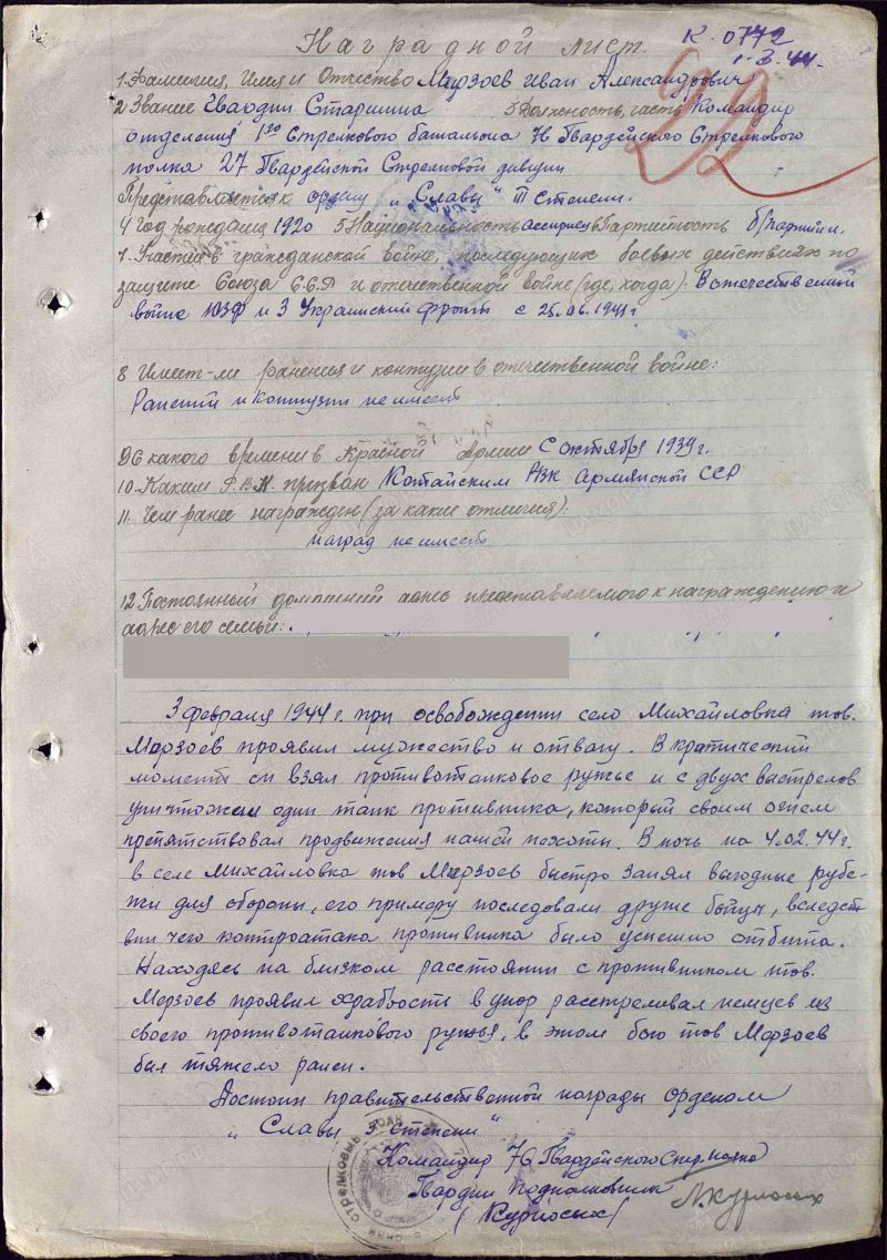 Прошёл 2 войны; финскую и Великую Отечественную, награждён Орденами Славы III и II степеней, дошёл ло Берлина. Погиб в автомобильной катастрофе в 1951 году.