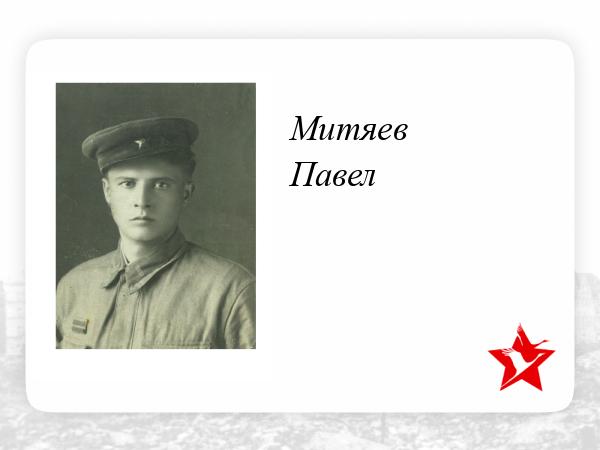 Мало информации сохранилось о нём, к сожалению. Родился он ориентировочно в 1923 году в Анджеро-Судженске Кемеровской области в семье коммуниста Архипа Митяева. Добровольцем ушёл в 1941 году на фронт. Верой и правдой служил Родине. Был командиром артиллерийской батареи. Пал в 1943 году при переправе через Днепр. Похоронен в городе Дно (Украина). Светлая память Герою.