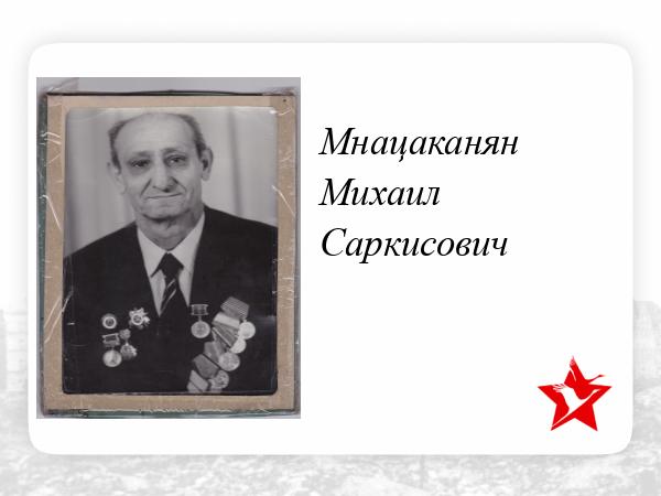 Родился в городе Степанакерт 01.09.1922 года. Откуда и был призван на фронт. Воевал под Керчью. Был парашютистом. В 1943 году получил ранение и был направлен на лечение в госпиталь города Керчь.