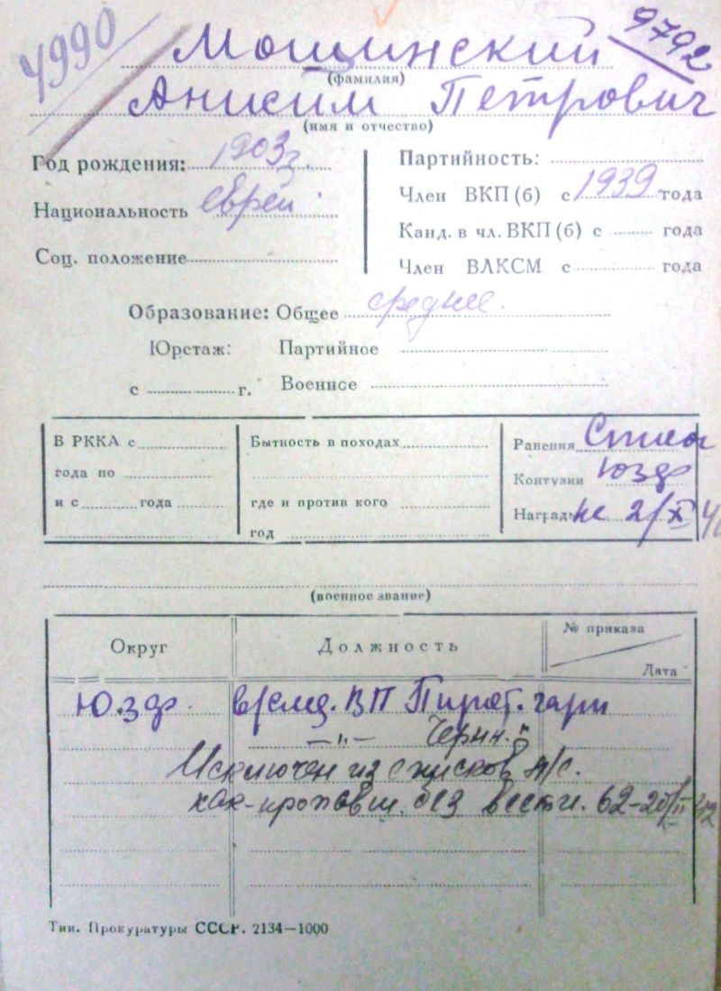 Жена Мощинская Полина Ароновна во время войны проживала в г. Намангане Узбекской ССР.