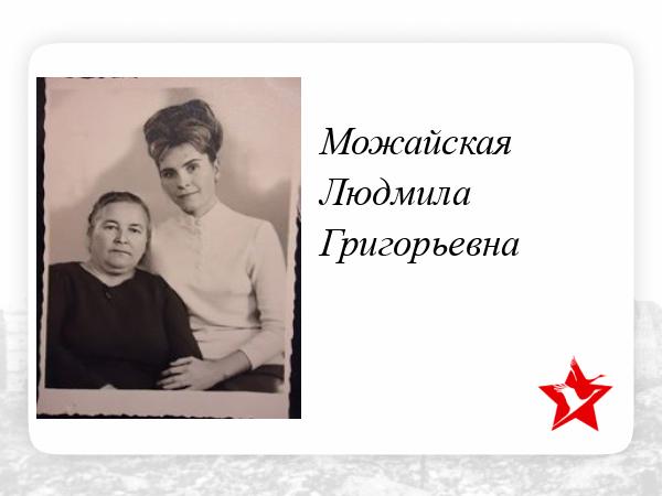 Людмила Григорьевна родилась в городе Ставрополе. Дом в котором жила семья бабушки Люды находился на месте завода «Электроавтоматика». Позднее бабушка Люда переехала со своей мамой прабабушкой Шурой на улицу Дзержинского рядом со школой №4. Прабабушка Шура рассказывала, что со школой №4 в годы Великой Отечественной войны произошла следующая история: «После того как немецко-фашистские захватчики захватили город Ставрополь, они начали устанавливать новые правила. В помещении школы разместился военный лазарет немецких войск, а затем архив. Когда советские войска начали освобождать город, немцы начали вывозить все документы включая архивные. Перед самым выездом немцы заложили в фундамент взрывчатку и попытались взорвать школу, но строение подпрыгнуло и село на место. На повторное минирование заряда уже не было». Так сохранилась школа, в которой потом учились мои бабушка Люда и папа Саша. К сожалению бабушка Люда умерла до моего рождения в 1994 году.