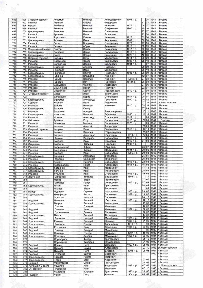 Откуда перезахоронен: г. Вязьма