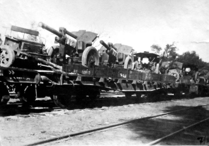 “Эшелон с советскими 122-мм гаубицами M-30 следует на фронт.”;
