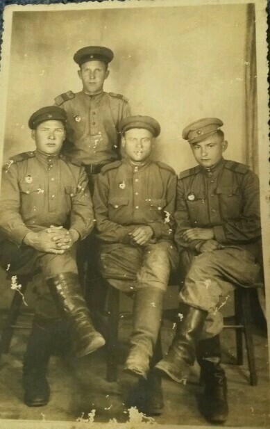 Прошёл войну в звании старшего сержанта. Воевал в разведке, поэтому многое неизвестно о его военной жизни. Документы хранятся в центральном архиве Министерства обороны, то есть-засекреченны. Знаем, что был ранен, одно из ранений в спину, лежал в госпитале. После войны не сразу вернулся домой. А когда отыскал семью, все были живы.
