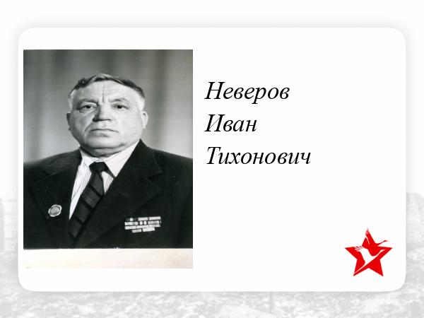 - Иван Тихонович Неверов был призван на фронт из Пильненского сельского совета в 1943 году.