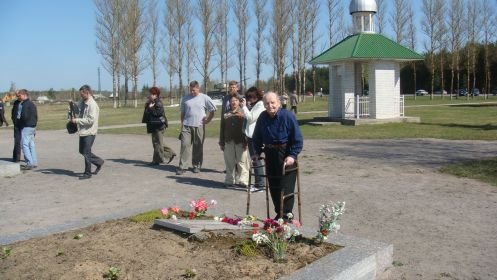 18 днем решили идти дальше. Вдали слышали усиленную стрельбу. Пошли на выстрелы через болота, рассчитывая выйти на передний край. На пути встретили 14 немцев, они нас не заметили, видимо, наблюдали за передним краем. Мы с близкого расстояния открыли огонь. Часть немцев уложили, остальные с боем отошли. Здесь я потерял Барабошкина. Он был убит пулей навылет в грудь.