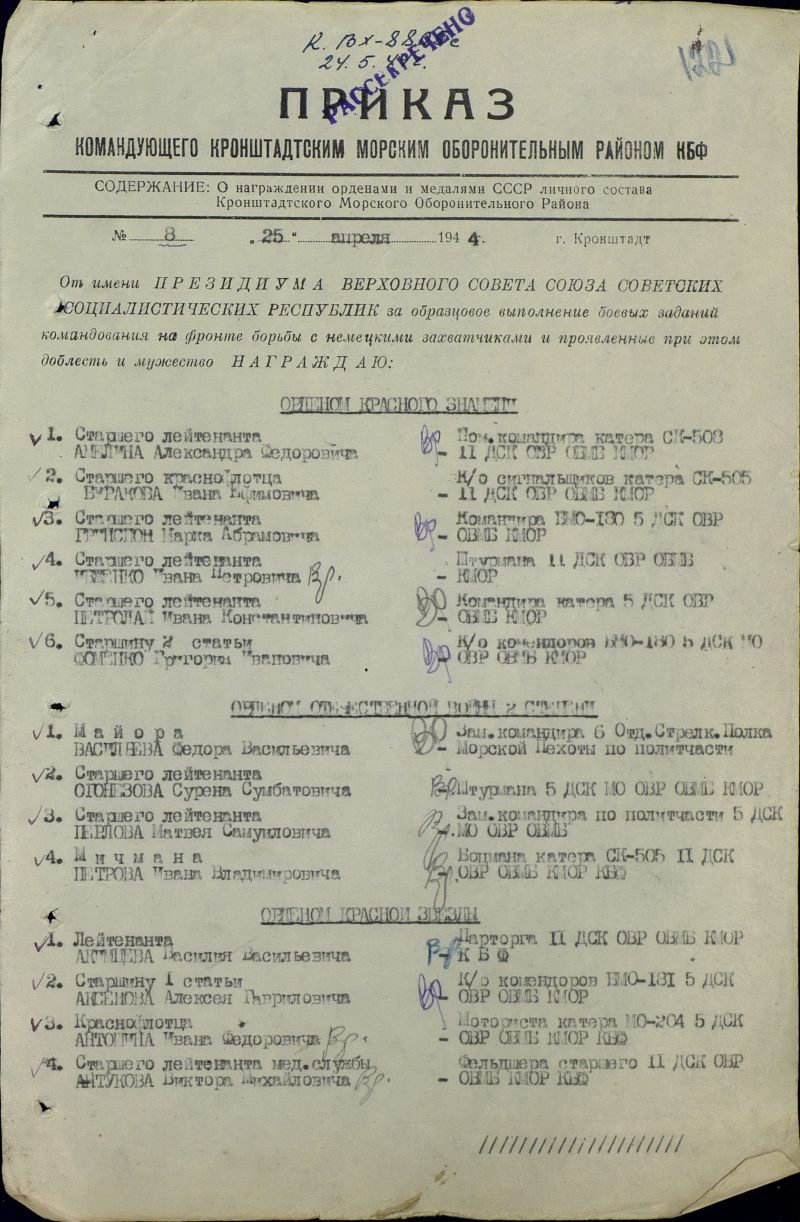 В начале февраля 1944-го Орлов вышел в Нарвский залив, где прикрывал тральщики, производившие для какой-то цели траление нескольких фарватеров в сторону Нарва—Йыэсуу. А после небольшого отдыха в базе на БМК-508 был получен приказ сопровождать конвой в Кронштадт. Матросы старательно готовили бронекатер для выполнения приказа, когда было получено распоряжение, предписывающее подойти к северному причалу, принять на борт десантников и следовать для выполнения задачи особого назначения.