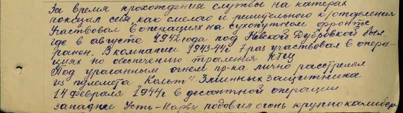 В феврале 1944 года отец участвовал в высадке «Мерекюльского десанта» и был очевидцем огневого рейда десантников батальона Маслова. Его катер БМО 508, на котором он был боцманом, шёл в первом эшелоне и высаживал группу десанта во главе с лейтенантом Любимовым. Артиллерийский и пулемётный расчёт катера обеспечил тогда прикрытие и подавление пулемётных точек противника. Эти события описаны в книге «Огненные фарватеры», Лениздат 1987 г.