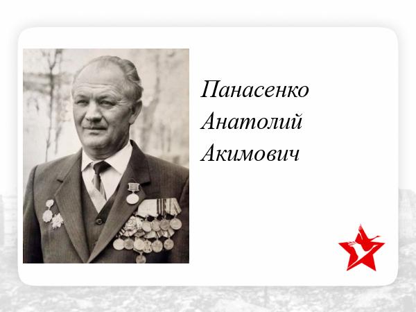 Панасенко Анатолий Акимович, ветеран войны. Воевал в составе Красной Армии в годы Великой Отечественной Войны