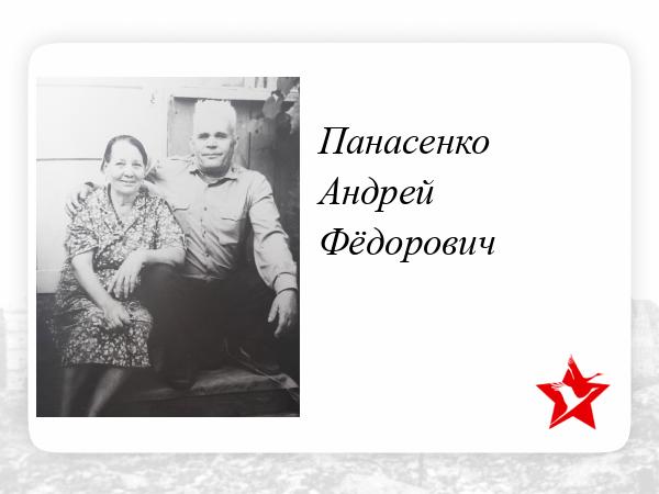 Моего продедушку зовут Панасенко Андрей Фёдорович. Мой прадед работал на заводе в охране. Подростком вступил в только что созданный колхоз, был одним из первых комсомольцев в станице Марьевка, состоял в дружине по раскулачиванию. Затем он работал на строительстве железной дороги, в цветочном совхозе, пока не устроился в Госрыбпром в городе Керчи. Понравилось ему рыбацкое дело, решил остаться здесь. Что может быть лучше работать на свежем воздухе под светлым небом мира? Тем более, что по встречал он здесь девушку Марию Фоминичну, полюбили они друг друга, поженились, а тут война!