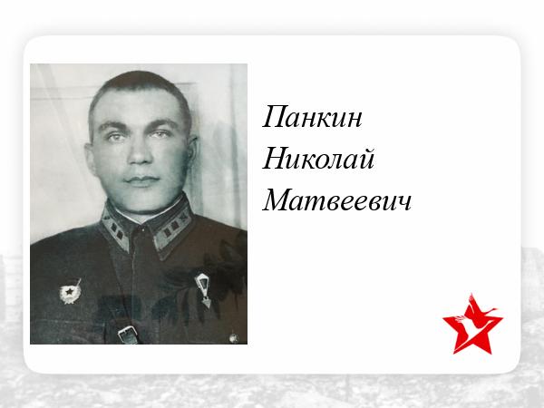 Нахолясь в 73й отдельной морской стрелковой бригаде т. Панкин, занимает должность заместителя командира роты, при прорыве блокады г. Ленинграда 12 января 1943 г., лично руководил ротой, которая в наступательно-оборонительном бою уничтожила 5 легких и 2 средних немецких танка. Лично тов. Панкин бутылками с горючей жидкостью поджог 2 фашистских.
