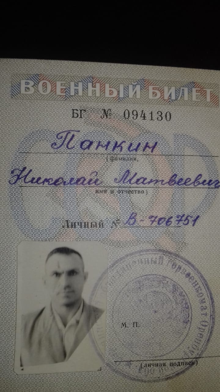 Товарищ Панкин Н.М. находился на фронте с 24.06.1941г. по 9.04.1943 г., с небольшим перерывом - в 7 месяцев (прохождение курсов младших политруков).