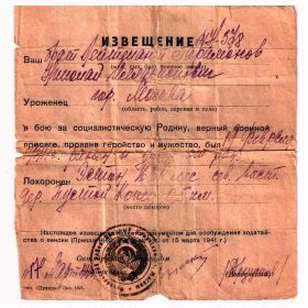 В 1941 году закончил школу. Как началась война поступил в лётное училище. Был летчиком, но в конце 1942 года комиссовали из-за болезни. Был заместителем командира училища по подготовке катюш. 19 февраля 1944 году при прорыве блокады Ленинграда их звено катюш дало залп огня, но их засекли фашисты и накрыли ответным огнём. Николай был ранен, умер от ран в г. Сланцы Ленинградской области. Похоронен в Деревне Пустой Конец, под г. Сланцы. Ему было 21 год. Мой дедушка-старший брат, Николай-младший - учился хорошо, был увлекающимся, любил науки, учил французский язык.