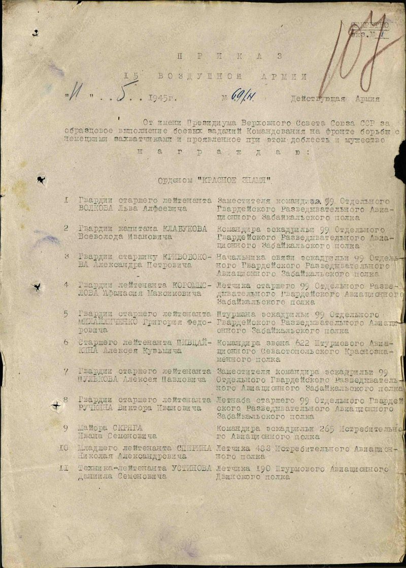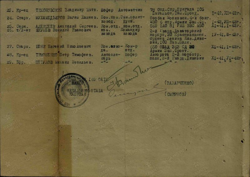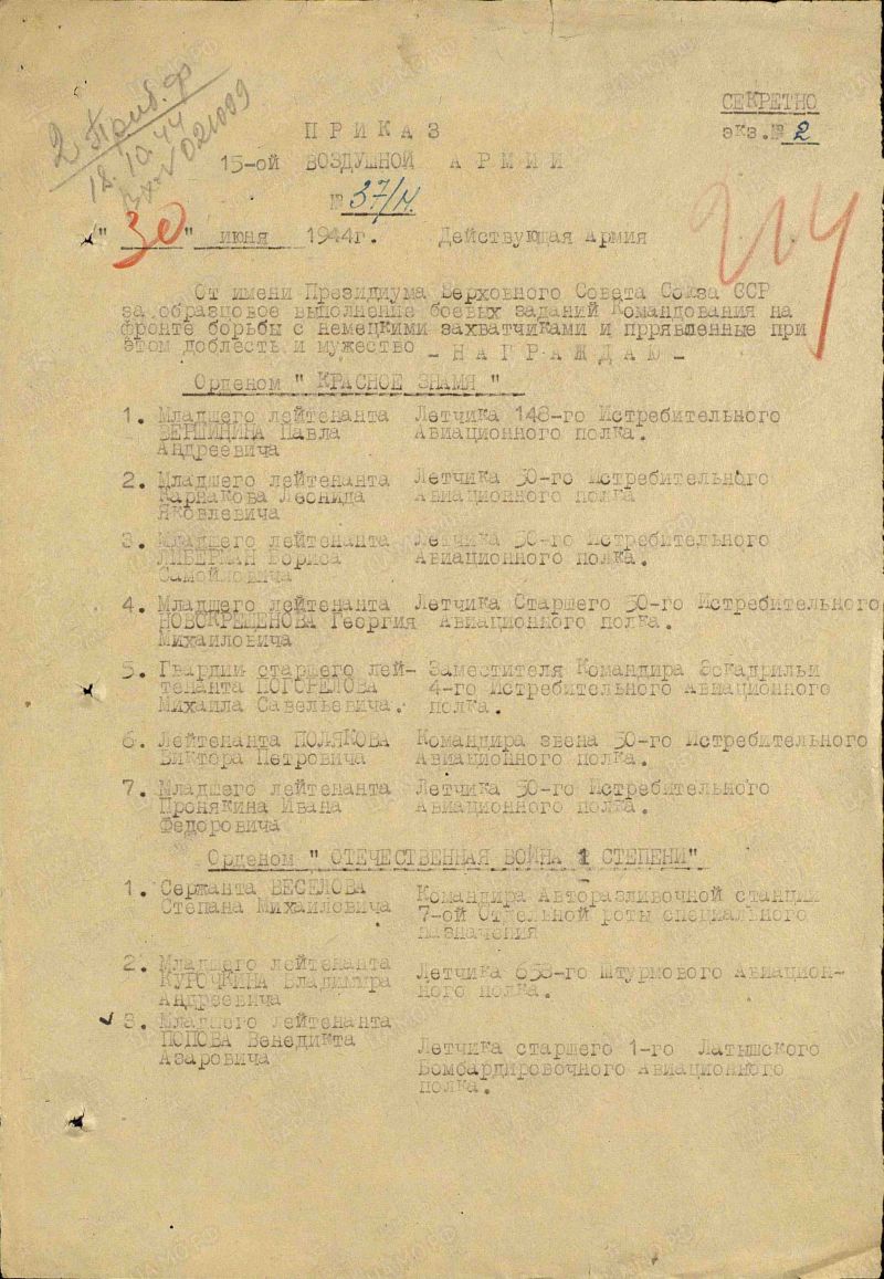 Призван в Красную Армию 28.06.1941 г. Прошел все войну шофером в 169-м Отдельном автотранспортном батальоне 15-й Воздушной армии. Участник обороны Москвы.