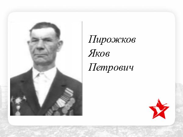 ПИРОЖКОВ Яков Петрович 6. 11.1923 д. Ромаши; призван Очерским РВК 23.05.1942; Великая Отечественная; японская 1945; гв. мл. сержант, минометчик гв.реактивных минометов "Катюша" М-31, командир машины 510-й отд. гв. миндивизион, 515-й отд. гв. миндивизион 17-й гв.мин. бригады; освобождение Прибалтики, Одесская операция; демоб. 1947, 9 мая; боевые награды: орд. Красной Звезды, Отечественной войны 2-й ст., мед. За оборону Сталинграда, За взятие Берлина, За победу над Германией, За победу над Японией; ранения: нет; совхоз "Очерский", председатель Верещагинского с/совета, зав. центр. складом. ПИРОЖКОВ Яков Петрович ЛИШЬ ОДИН ЭПИЗОД... Это случилось летом сорок третьего под Орлом. Три дня с восхода до полуночи наши огневые позиции нещадно бомбила вражеская авиация. Одна армада сменяла другую. Каждый налет — примерно полсотни «Юнкерсов». И никакого передыху не было — носа не высунешь. Мы, понятно, легкой жизни не ждали, заранее подготовились, зарывшись в землю вместе с техникой. На этом участке сосредоточились несколько гвардейских бригад реактивных минометов, в том числе и наша 17-я, а также очень много ствольной артиллерии. Готовились отразить ожидаемое наступление врага. Потерь в людях наша бригада от бомбежки не имела, но почти все установки вышли из строя. Жарко, конечно, было. В прямом и переносном смысле. Больше всего хотелось пить, но фляжки давно опустели. Когда наше терпение кончилось, мы с Петром Смирновым, моим ровесником из Москвы, решили во что бы то ни стало принести воды. Только вот как это сделать? Дождались, когда одна группа самолетов отбомбила, а другая, видно, где-то подзадержалась, мы кинулись к колодцу. До него — километр или полтора. Добежали. Там же в укрытиях стояли штабные машины, и туда бомбы не падали — тихо и спокойно всегда. Наполнили до десятка фляжек, идем обратно, на небо поглядываем, ухо навострили: не летят ли, окаянные? Точно! Летят! Легки на помине, приближаются к переднему краю. Мы, само собой, в пекло не торопимся, шаг замедлили, лучше переждать в более безопасном месте. И вдруг слышим негромкую немецкую речь. Это еще откуда? У нас-то в тылу! Но поблизости фрицев не видать. А голос будто рядом. Ага, вот они куда залезли, субчики — в погребную яму, которая открытой осталась на месте сожженной деревни. Заглянули мы вниз осторожно. Сидят там трое — старшина, сержант и рядовой. Обмундирование на них русское, а старший из них по-немецки что-то наговаривает, вроде команды подает. На руке у него — компас. Переглянулись мы с Петром, поняли друг друга. Петро поздоровше меня — прыгнул в яму, стукнул старшего, сидящего на соломе, тот головой — в угол. — Ты что?! — возмущается старший. Чешет уже по-русски. И все трое хватаются за автоматы. Тут я им пару слов сверху сказал и взял на прицел. Петро подкрепил мои слова — дал еще раз в ухо старшему, осмотрел яму и обнаружил под соломой ящик, в нем — рацию. Бомбежка тем временем кончилась, и бомбили немцы на этот раз чистое поле, чуть в стороне от наших позиций. Ясное дело: некому стало поточнее наводить самолеты на цель. Привели мы этих корректировщиков к нашему полковнику Жежеруку, он их допросил. Оказались русскими. Предали Родину, перешли на сторону врага и снова к нам пожаловали — для диверсий. Вреда они нам принесли много и пощады им не было. А технику мы вскоре получили новую, отбили все атаки фашистской пехоты и танк