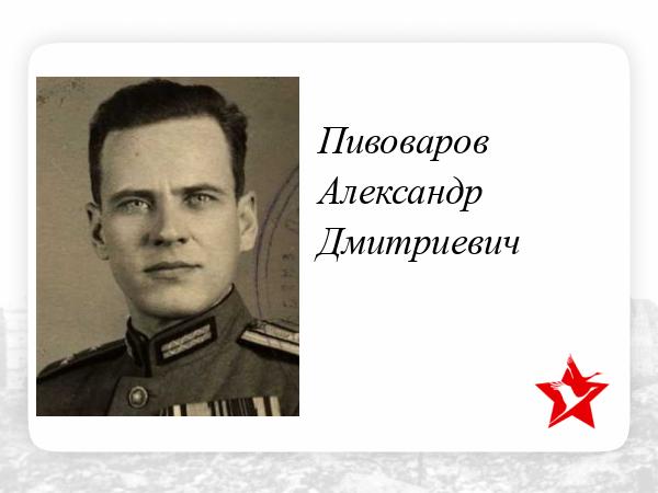 Александр Дмитриевич Пивоваров (12 сентября 1910, Смоленск – 1983, Москва) – советский кадровый офицер, участник советско-финской войны 1939 – 1940 гг., участник Великой Отечественной войны.