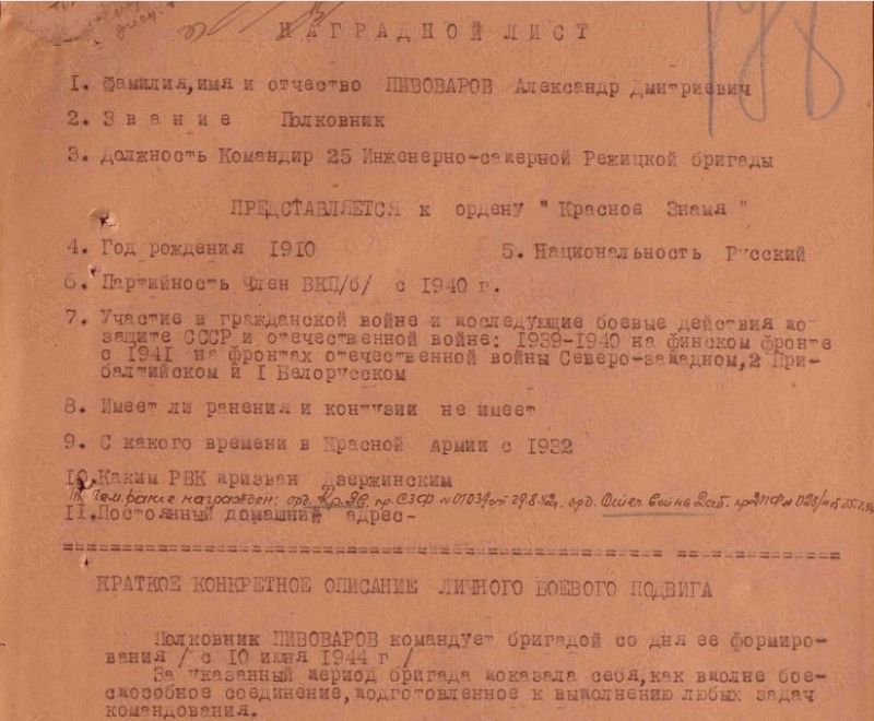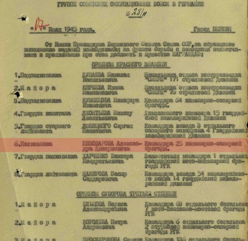 10 июня 1944 г. Александр Дмитриевич Пивоваров, уже в звании полковника, был назначен командующим 25-й инженерно-саперной бригады.