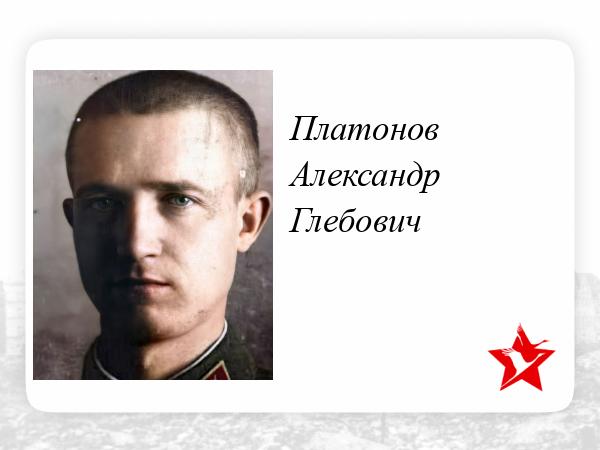 В бою на развилке дорог Петсамо-Никель-Ахмалахти 13.11.44 от непрерывного отражения вражеских контратак боеприпасы на минометной батарее были на исходе. А враг наседал, находясь уже в 200 м. от батареи. т. Платонов, оставив у минометов по одному бойцу, повел свой взвод в цель стрелковой роты. Три вражеские контратаки были отбиты с участием его взвода. Во второй контратаке он был ранен, но остался в строю. Немцы, подбросив подкрепление, перешли в атаку и создали угрозу прорыва нашей обороны на одном из участков. Тогда т. Платонов переходит со взводом на трудный участок. Бойцы, возглавляемые им, дрались исключительно храбро и умело. В одной из атак т. Платонов пал смертью храбрых. Его бойцы, мстя за смерть командира и воодушевленные его примером отразили все вражеские контратаки.