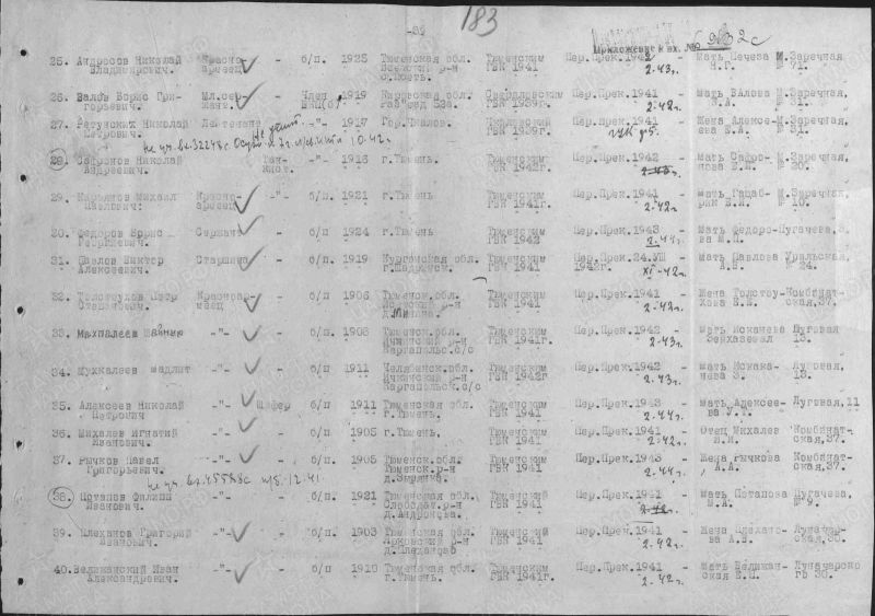 Дата и место призыва 1941 Тюменский ГВК, Тюменская обл., г. Тюмень.