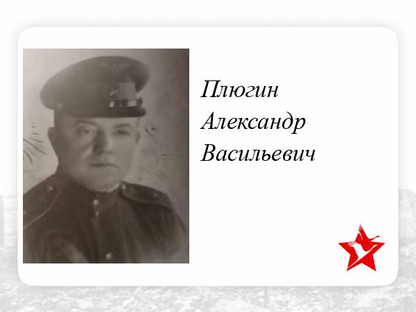 Мой дедушка Александр Васильевич Плюгин , в армию пришел по призыву комсомола в 1932 году. Был направлен на учебу в Ленинградское училище политработников РККА СССР. В звании лейтенанта начал службу в Ленинградском военном округе на советско-финской границе, он тогда уже был женат и имел двух маленьких дочерей, одна из которых была моя мама Людмила Александровна. Но мирная жизнь скоро кончилась. Началась Финская война, семью эвакуировали а дедушка остался на фронте.. Это была его первая война.