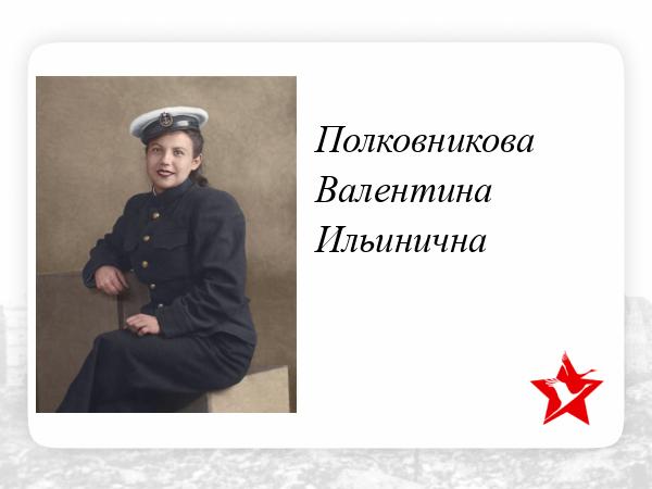 Полковникова Валентина Ильинична, моя бабушка родилась 23 февраля 1921 года в дер. Сенчуково Старицкого (Высоковского) района Калининской (Западной) области. Её отец Полковников(Ширяев) Илья Михайлович родом из дер. Сенчуково Тверской губернии, её мама Полковникова(дев.Михеева) Евдокия Петровна из дер.Малинники.