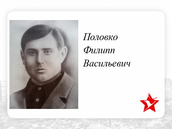 Мой прадед Половко Филипп Васильевич 1908 года рождения, Ушел на фронт и не вернулся. Числится пропавшим без вести.