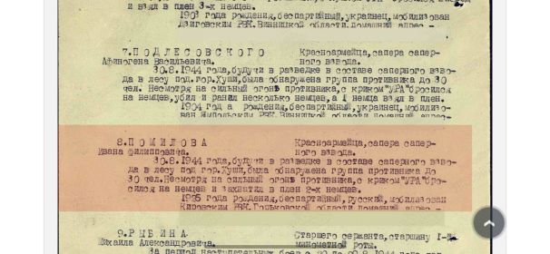 30 августа 1944 гола будучи в разведке в лесу под городом Хуши, была обнаружена группа из 10 немцев. С криком «Ура» бросился и героически взял в плен 2 немцев.