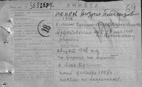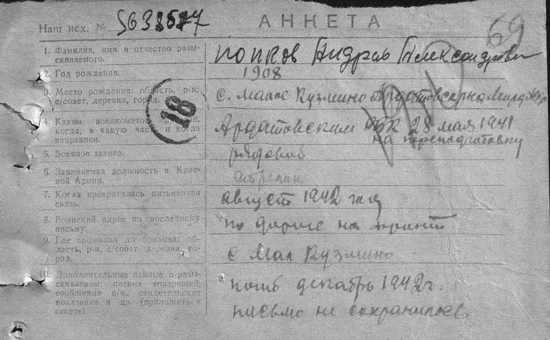 Личное заключение Военкома по материалам: Погиб в декабре 1942г.