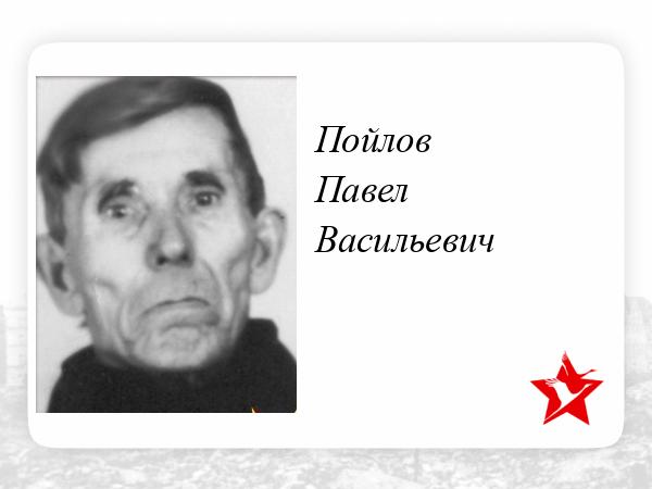 Наш дед, Пойлов Павел Васильевич, родился в д.Багаи Фалёнского р-на, Кировской области в 1923 году. В марте 1942 года, девятнадцатилетним юношей ушел защищать Родину. Служил шофером 136 гвардейского артиллерийского полка Украинского фронта. Во время боевых действий проявил доблесть и мужество в борьбе с немецкими захватчиками. За что был награжден правительственными наградами: медалью «За отвагу», орденом «Красной Звезды», медалью «За взятие Будапешта», Орденом Славы III степени, Орденом Славы II степени. Из наградного листа гв. сержанта Пойлова Павла Васильевича шофера 136 гв. артиллерийского Будапештского полка 68 гв. стрелковой Проскуровской Краснознаменной дивизии к Ордену III степени, мы узнали о его подвиге: «В бою в районе с.Роттен, 17.04.1945 года, при отражении сильной контратаки противника, под ожесточенным минометным и ружейно – пулеметным огнем врага, вывез орудие и вывел машину из –под огнестрела в трудных условиях горных дорог, чем дал возможность с другой огневой позиции открыть огонь по противнику». С фронта дед вернулся в 1947 году. После войны работал трактористом в совхозе «Россия» Фалёнского р-на Кировской области. В 1992 году его жизнь оборвалась.