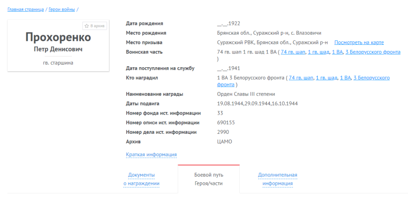 Боевой путь