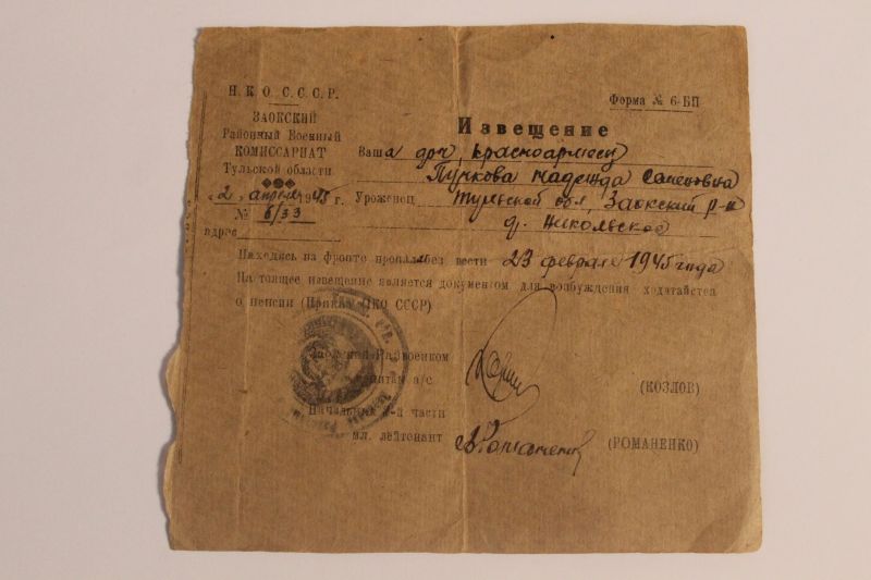 Звание: рядовой в РККА с 04.1943 года Место призыва: Заокский РВК, Тульская обл., Заокский р-н