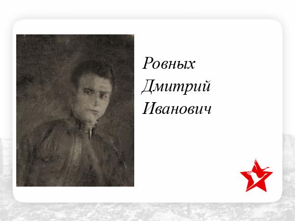 По данным ОБД Мемориал, в Книгах Памяти Калининградской области и Красноярского края - Ровных Дмитрий Иванович 1918 г.р. умер от ран 01.02.1945 г. в 205 отд. медсанбате 144-ой стрелковой дивизии. Подробности на Форуме Поисковых Движений: http://forum.patriotcenter.ru/index.php?topic=47497.0