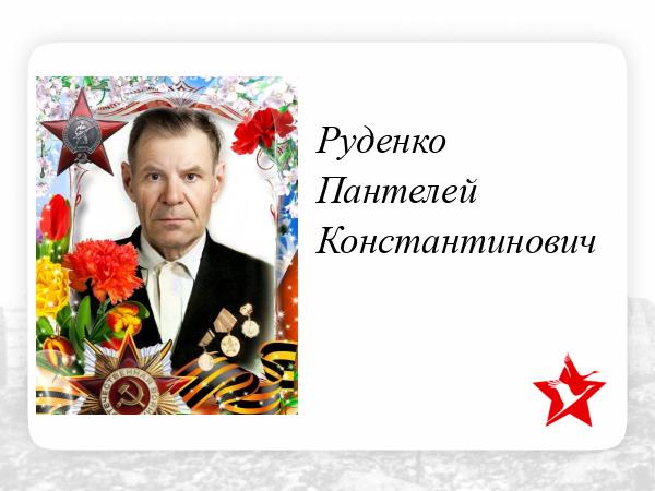 За особые боевые заслуги, за время несения воинской службы в рядах РККА, Руденко Пантелей Константинович был награжден орденами "Красной Звезды" и " Отечественной войны 1-ой степени ", а также многими медалями.