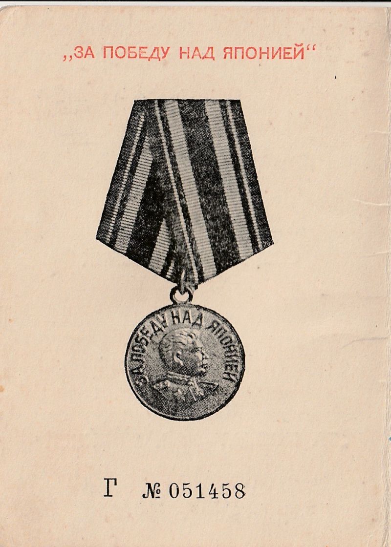 06.04.1944 зачислен в списки личного состава 54 пограничного отряда войск НКВД, который в составе Действующей армии участвовал в войне с империалистической Японией с 9 августа по 3 сентября 1945 года.