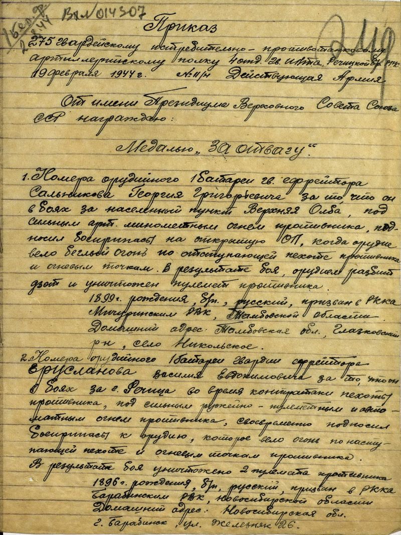 МЕСТО СЛУЖБЫ: 275 ГВАРДЕЙСКИЙ ИСТРЕБИТЕЛЬНО-ПРОТИВОТАНКОВЫЙ АРТИЛЛЕРИЙСКИЙ ПОЛК 4 ГВ. ОИПТАБР РГК 1 БЕЛ.Ф.