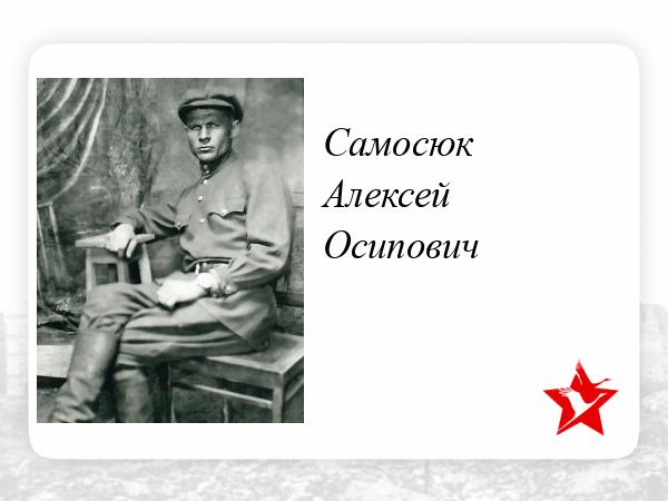 Самосюк Алексей Осипович призывался в 1941 году из Иглинского р-на Башкирской АССР. Служил на Ленинградском фронте. После войны вернулся домой, в деревню Сергеевка.