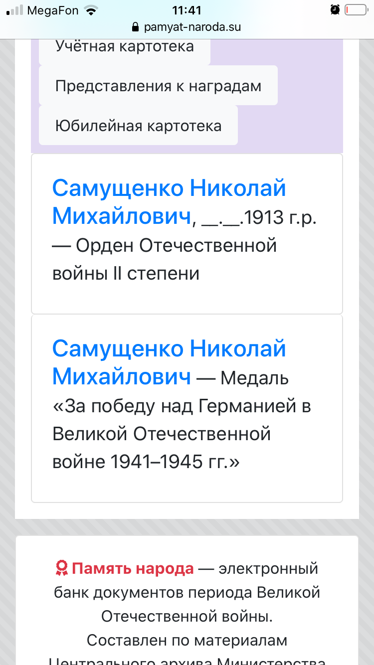 Самущенко Николай Михайлович в составе инженерных войск вместе с танковой дивизией дошёл до Берлина и остался служить в Германии в Группе советских войск после войны. Закончил военную службу в звании полковника.