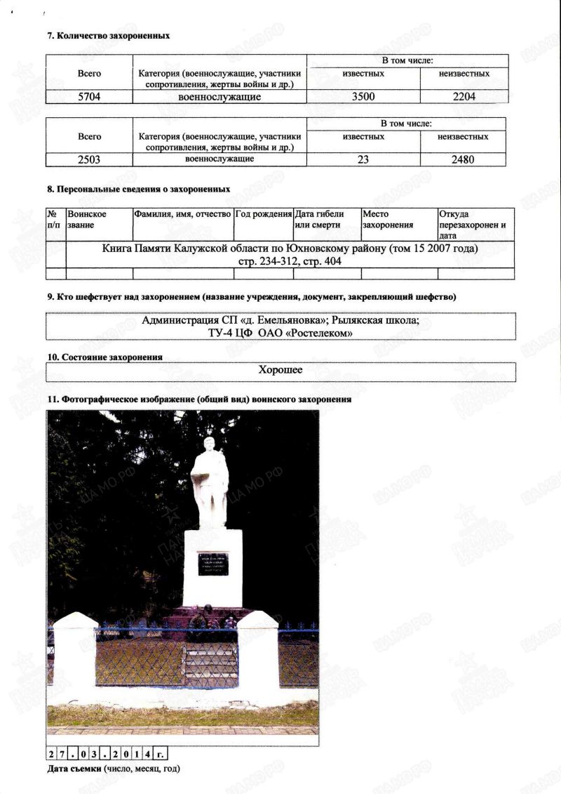 Кто шефствует над захоронением Администрация с.п. "д. Емельяновка"; Рылякская школа; ТУ-4 ЦФ ОАО "Ростелеком"