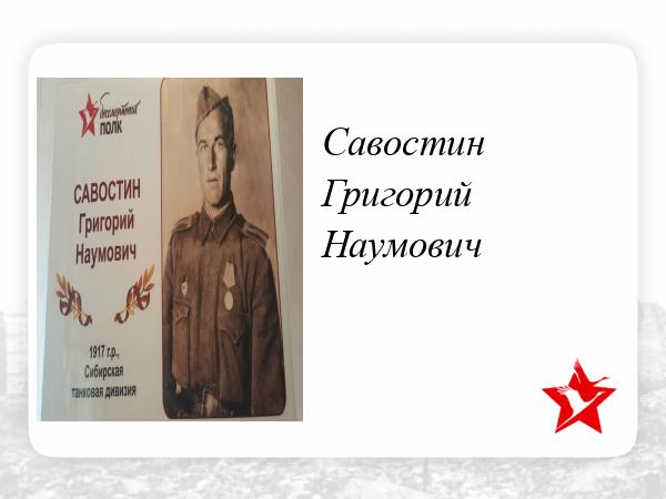 Родился в 1917 году. Военная часть 24556. Взят на фронт октябрь 1942 года, ушел с эшелоном 534 под Москву в составе сибирской дивизии.