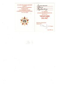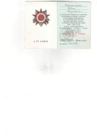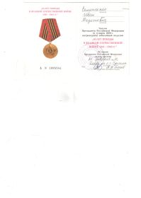 Награжден орденом Отечественной войны второй степени, медалью « за победу над Германией».